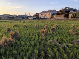 田んぼに藁の束