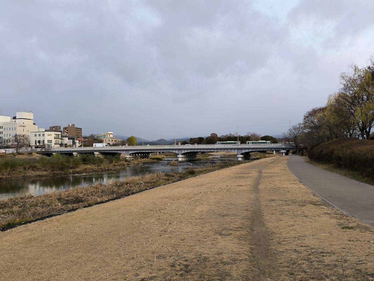 鴨川の河川敷を走っています |